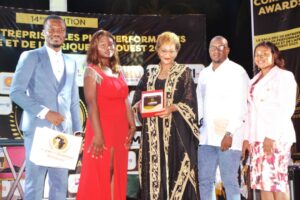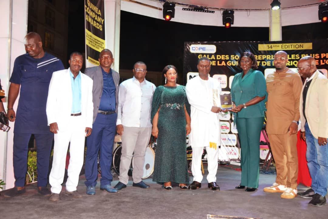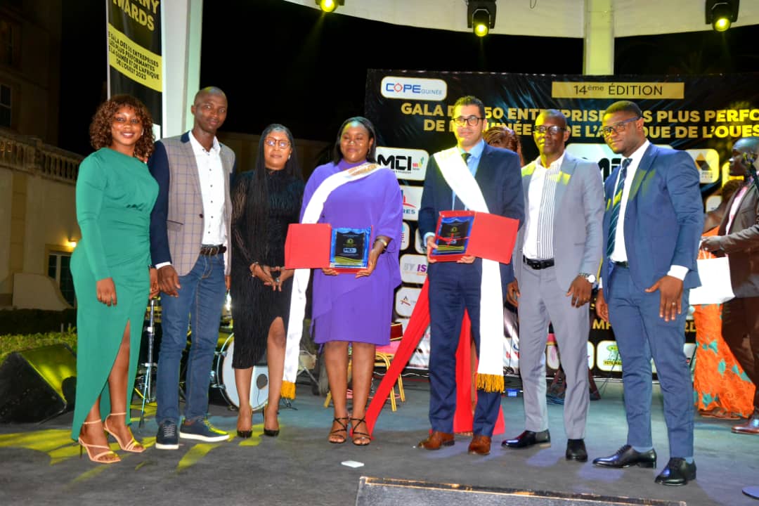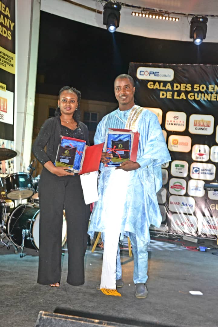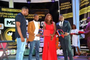 grands entrepreneurs de la Guinée et de l’Afrique de l’ouest sur la très convoité scène de la 14ème édition des GUINEA COMPANY AWARDS 2023-le Gala des 50 Entreprises les plus performantes de la Guinée et de l’Afrique de l’Ouest avec un accompagnement des musiciens du mythique groupe Conakry Cocktail. Un